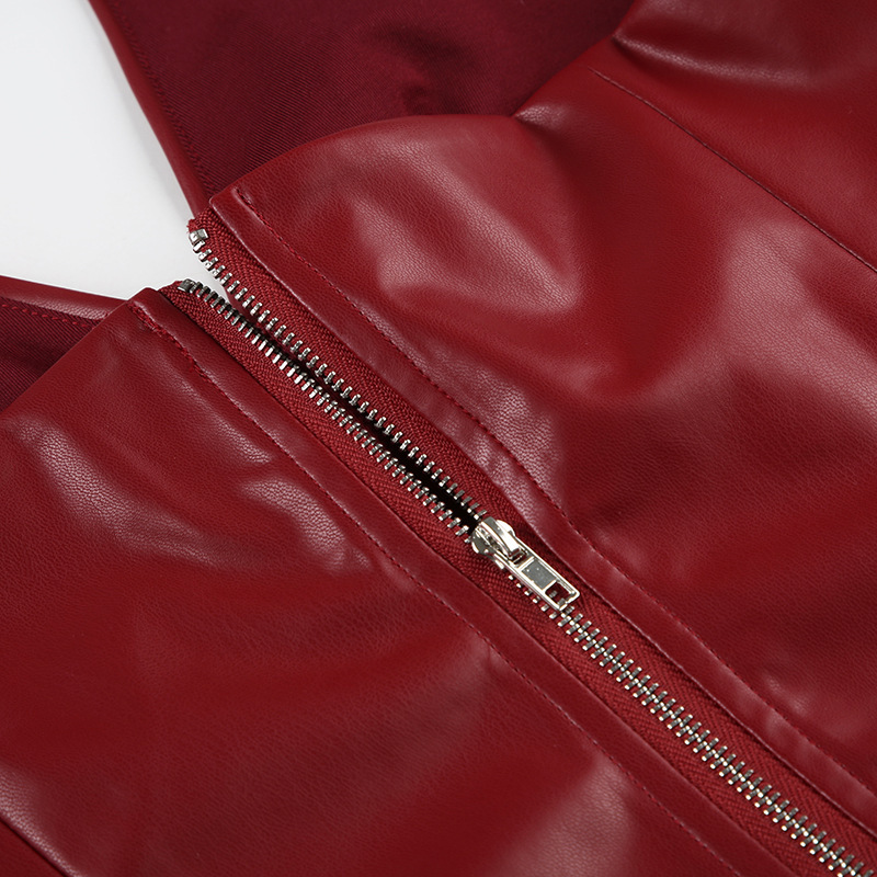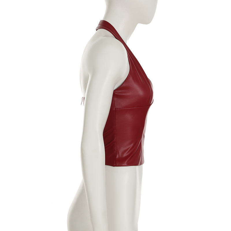 Women's Solid Color And V-neck Leather Halter Back Zipper Vest